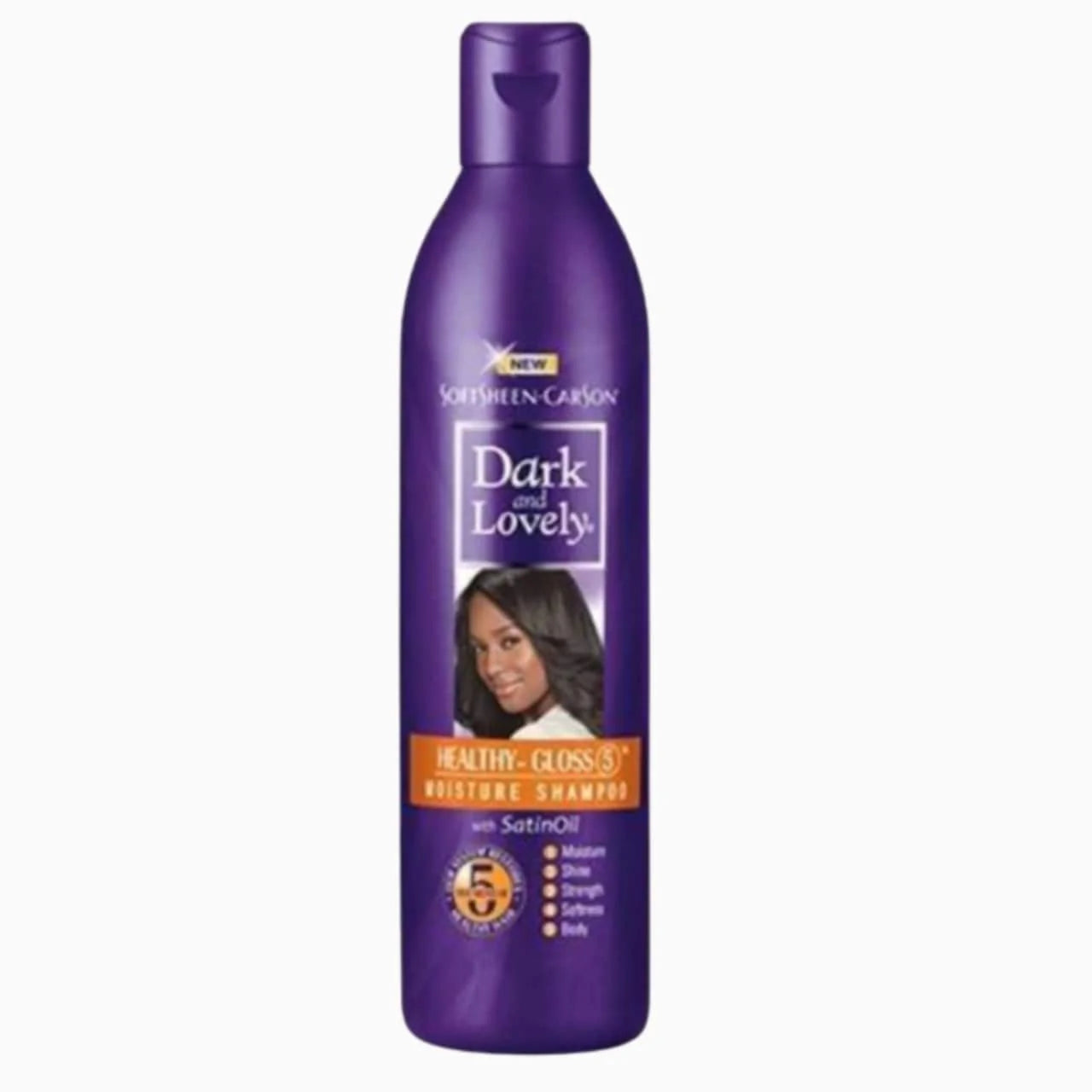 Dark & Lovely Healthy-Gloss 5 Shampoo Oil (13.5 Oz). is a hair care product that is designed to provide moisture and shine to dry, dull hair. It contains satin oil and a unique blend of natural ingredients that work together to nourish and hydrate the hair, leaving it looking and feeling healthy and glossy. This Dark & Lovely Healthy-Gloss 5 Shampoo Oil is suitable for all hair types and can be used daily to help maintain healthy hair. It gently cleanses the hair and scalp without stripping away natural oils or causing dryness. With regular use, this shampoo can help to improve the overall health and appearance of the hair.